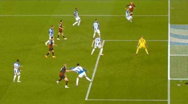 最终哈兰德完成了自己联赛的第8次助攻,这也是他本赛季英超第44次参与进球(36球8助),已经追平了2002-03赛季亨利的纪录(24球20助)。不过布莱顿仅仅落后了不到一刻钟,恩西索就在禁区外以一脚精彩的远射为主队扳平了比分。在BBC担任评论员的威尔士名宿加比登指出,布莱顿此球的观赏性不仅在这脚世界波上:“如果倒退回去看全这粒进球的回放,你就会理解布莱顿为什么会这么执着于后场出球的战术。这次进攻正是由守门员斯蒂尔的出球发起的,之后他们做出了一次漂亮的转移,恩西索赶在曼城防线完成退防前轰出了如此漂亮的一脚远射。”
